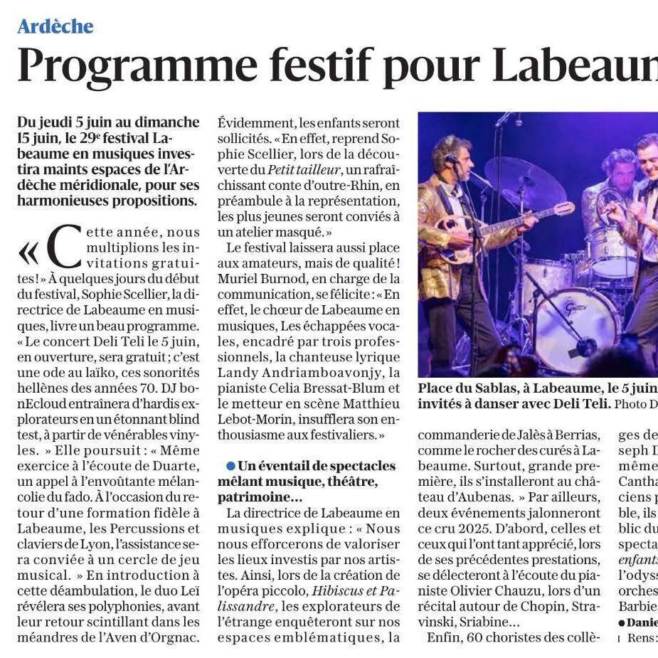 Labeaume en musique orga­nise son festi­val d’une dizaine de dates pendant la première quin­zaine de juin, depuis près de 30 ans…
