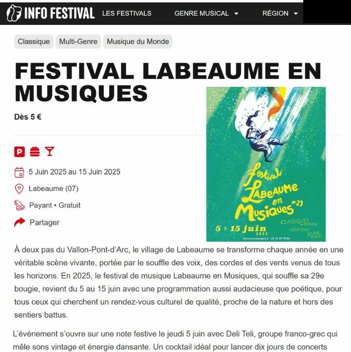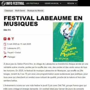 Labeaume en Musiques labellisée Scène d’Intérêt National